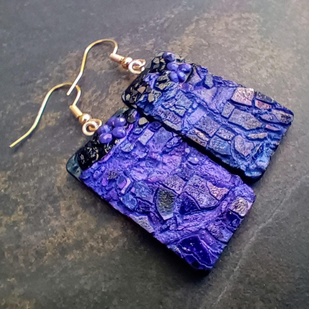 Unique handcrafted earrings, made exclusively from polymer clay. These are distressed and organic, created using my latest techniques. They are luxurious and a statement piece, the perfect accessory for girls with their own style who are not afraid of grabbing everyone's attention when walking into a room or being remembered long after they have left.