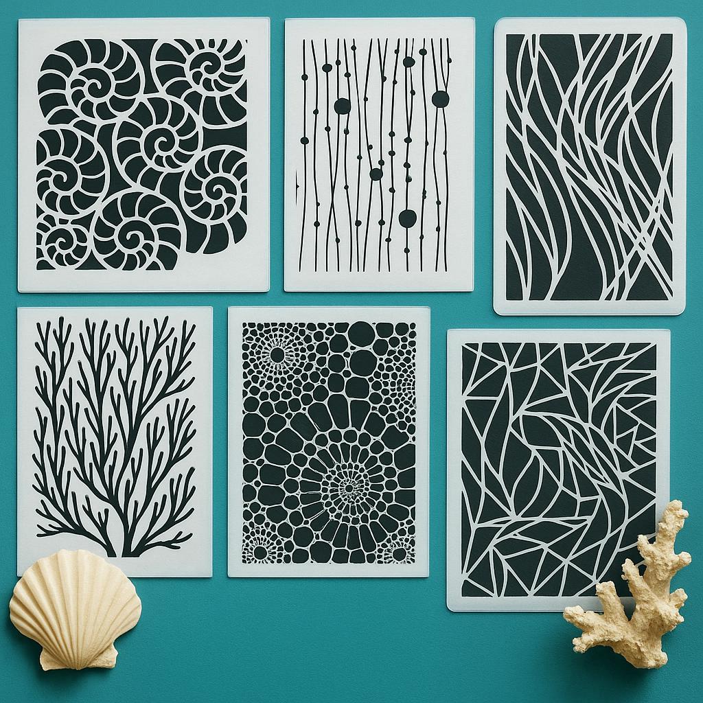 Dive into creativity with this Marine Stencil Collection, featuring 6 reusable, precision-cut stencils inspired by ocean life. Each design is crafted from durable, flexible Mylar and cut with professional accuracy for crisp, clean edges every time.