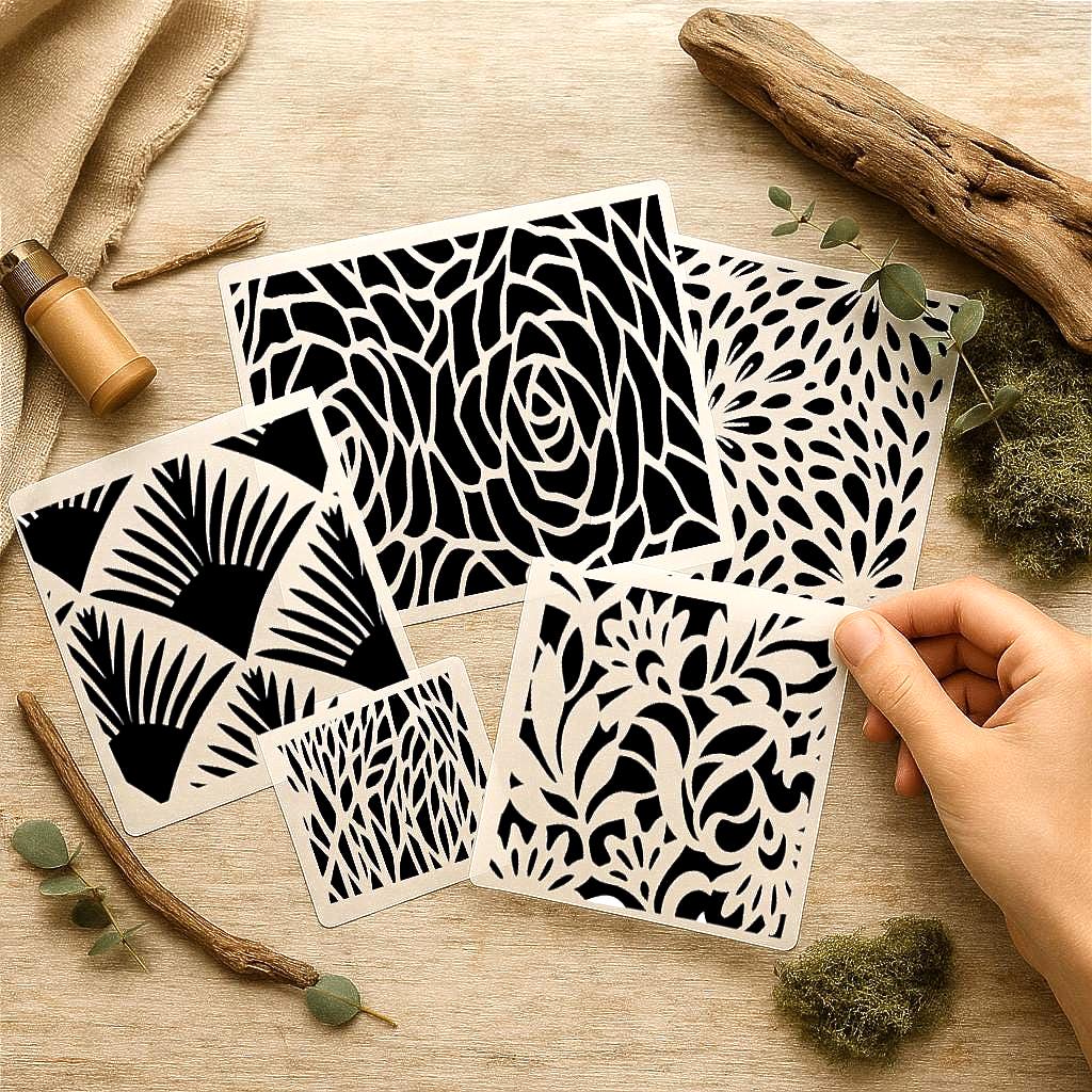Unleash your creativity with this complete stencil set, featuring 8 unique designs in floral, botanical, tree, and geometric patterns. Perfect for DIY wall painting, furniture upcycling, fabric printing, scrapbooking, and mixed media projects, this set gives you endless ways to add professional designs to your crafts.