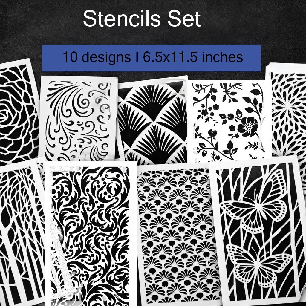 ✔ 10 Stencil Designs – 4.6x8.1 (great for borders, accents, crafts & textile art)