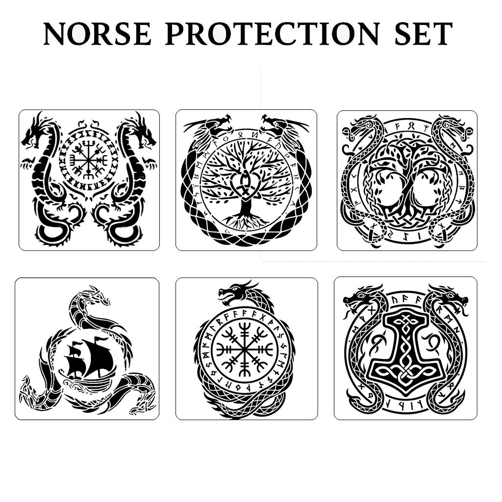 Bring ancient symbolism into your craft with this curated set of six large-format 11.5 x 11.5 inch stencils, inspired by authentic Viking iconography and rendered for modern artisan making. Each design is created from original artwork and cut large enough for statement décor, leatherwork, ritual shields, costume pieces, banners, travel talismans, and heirloom crafts.