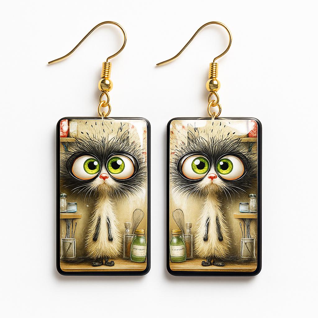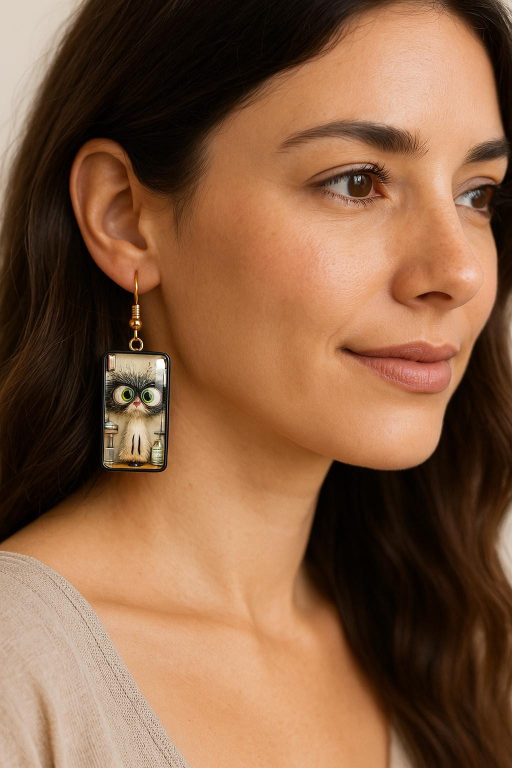 These earrings have a unique charm and personality thanks to the expressive illustration and artisan image-transfer process. The resin dome adds a beautiful glass-like shine that enhances the artwork and elevates the design.