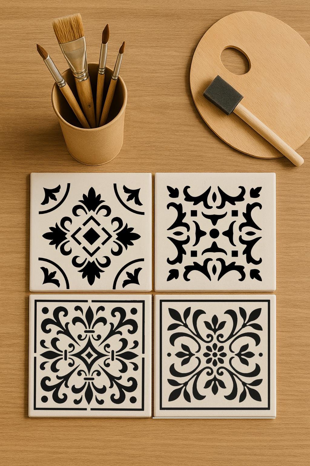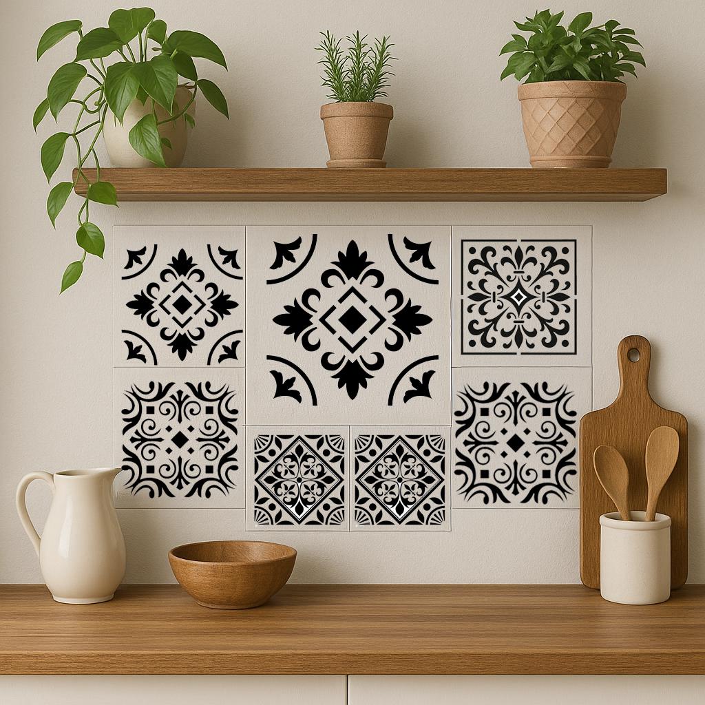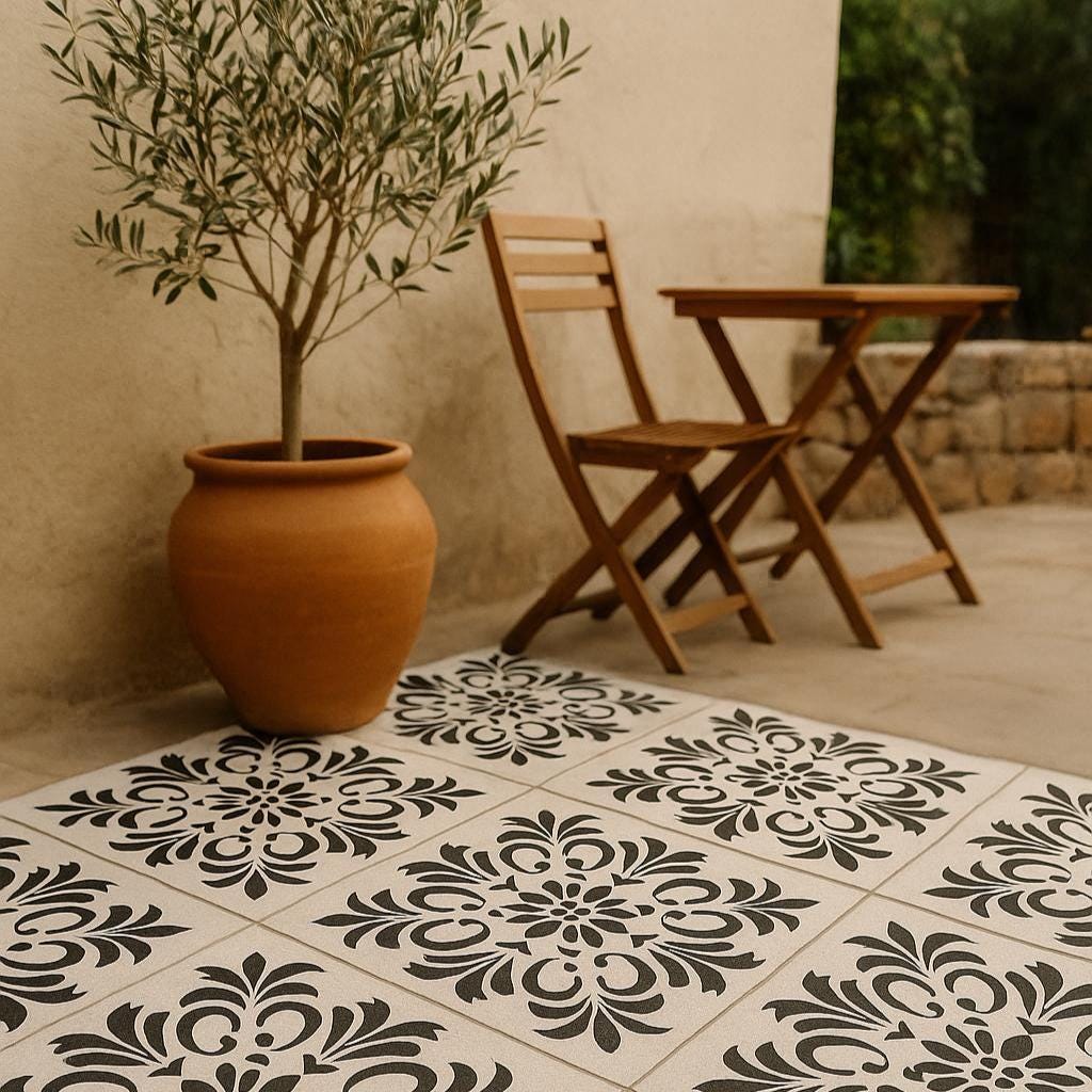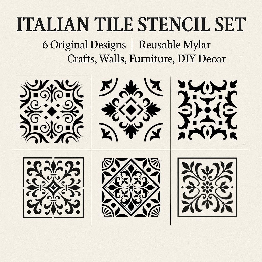 Bring timeless Mediterranean charm into your creative projects with this Italian Tiles Stencil Set, featuring 6 original, hand-designed patterns inspired by classic Florentine and Sicilian tilework. Perfect for adding elegant detail to walls, wood signs, furniture, floors, fabric, canvas, ceramic, and DIY home décor.