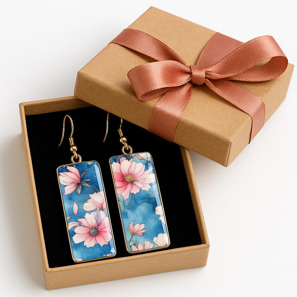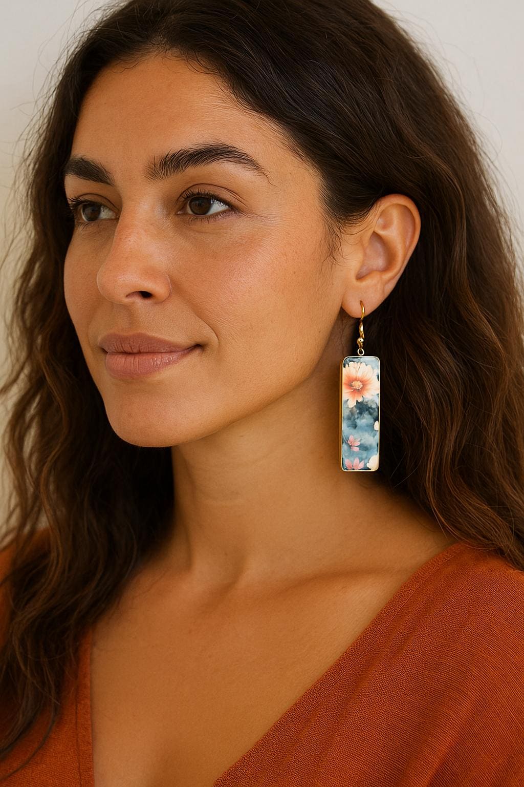 A soft breeze moves through a garden in bloom — captured in miniature and sealed beneath crystal-clear resin. Each pair feels like wearing a tiny painted canvas, a moment of beauty you can carry with you.