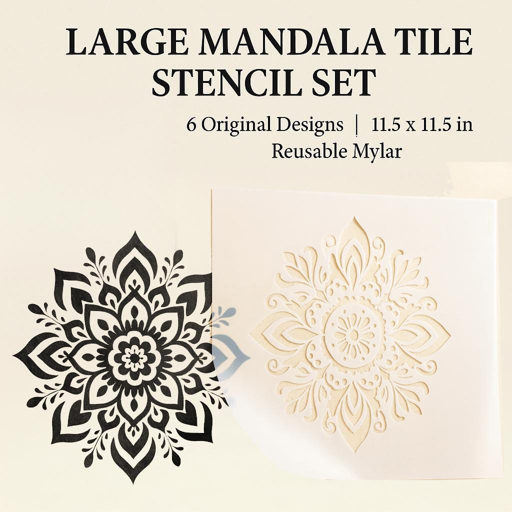 Make a bold, high-impact statement with this Large Mandala Tile Stencil Set, featuring 6 original, handcrafted designs sized at a generous 11.5 × 11.5 inches each. Designed for dramatic applications, these stencils are perfect for transforming floors, walls, stair risers, patios, furniture, and large-scale art projects.