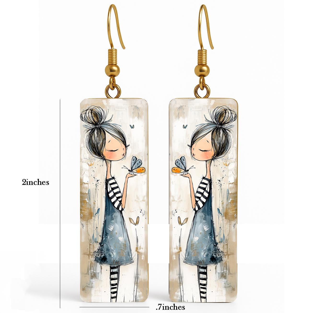 These whimsical earrings are handcrafted from polymer clay and feature an expressive, painterly girl illustration inspired by curiosity, gentleness, and quiet moments. Each design is applied by hand, making every pair subtly unique. Lightweight, durable, and full of personality,