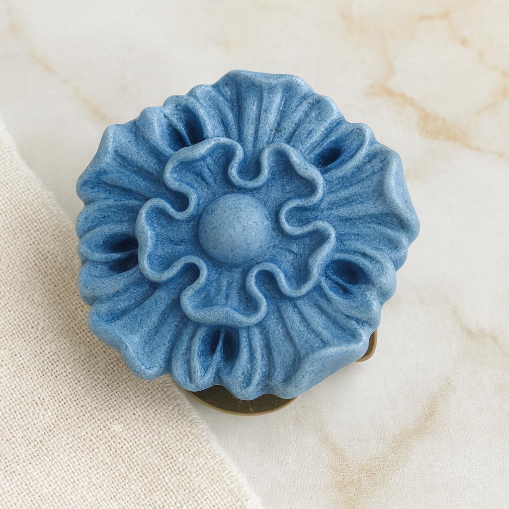 A bloom of clay shaped by hand,