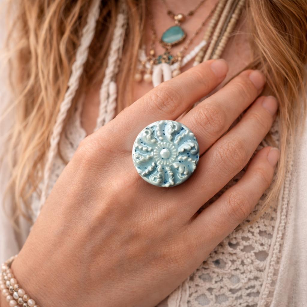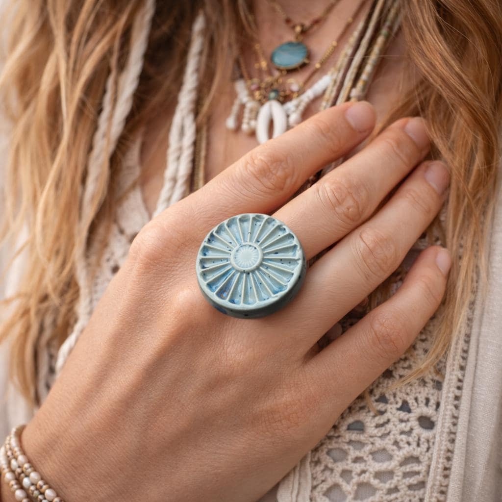 #CeramicJewelry #ArtJewelry #StatementRing #HandmadeStyle #BohoJewelry