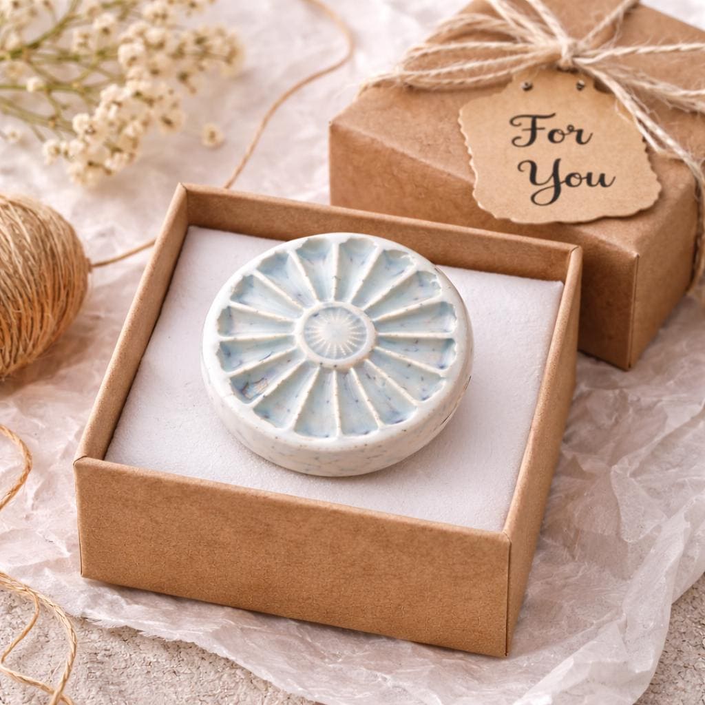 While the glaze color remains consistent, each ring features a distinct shape and relief pattern, making every piece truly one of a kind.