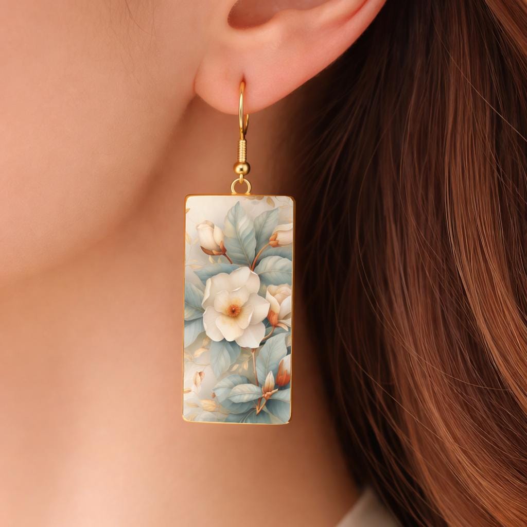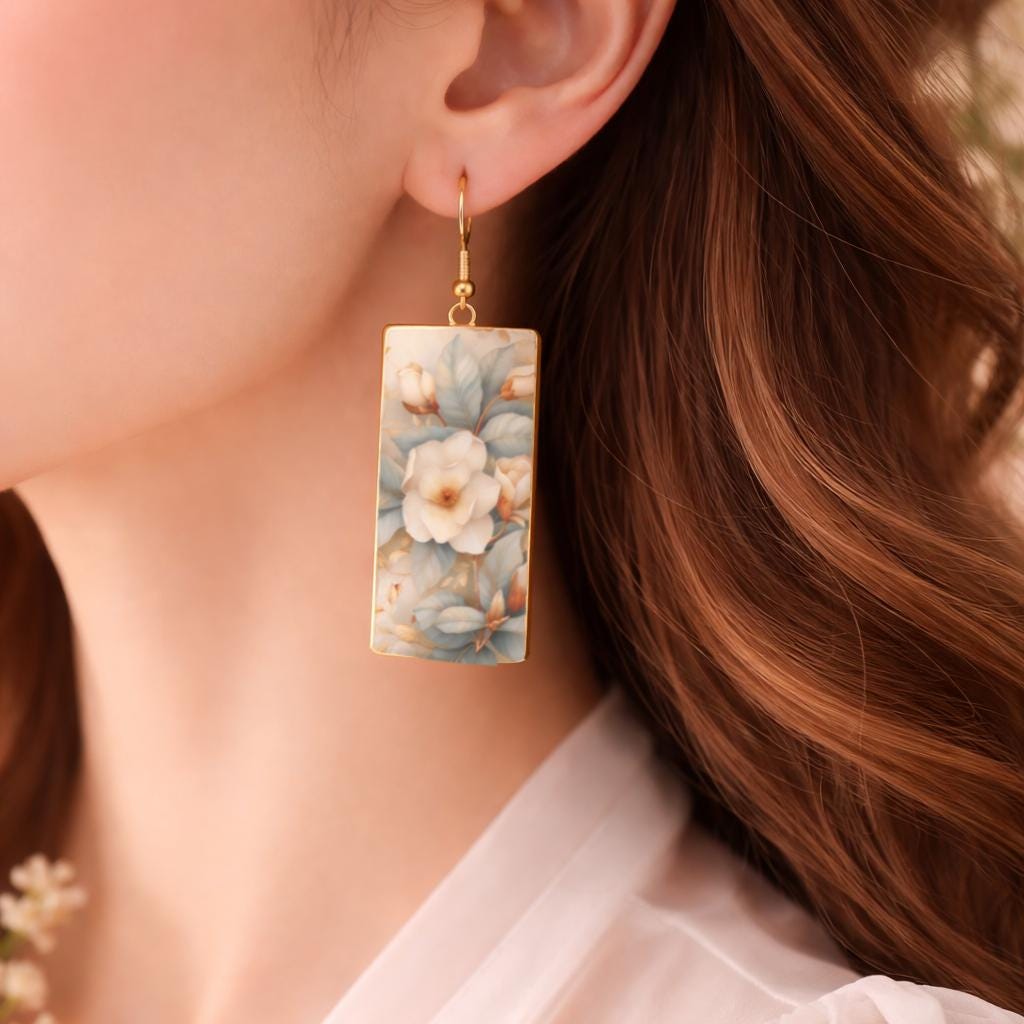 Soft, poetic, and quietly striking — these rectangular dangle earrings are designed as tiny works of art you can wear. They feature carefully selected artwork, transferred and sealed by hand to create lightweight, wearable designs.