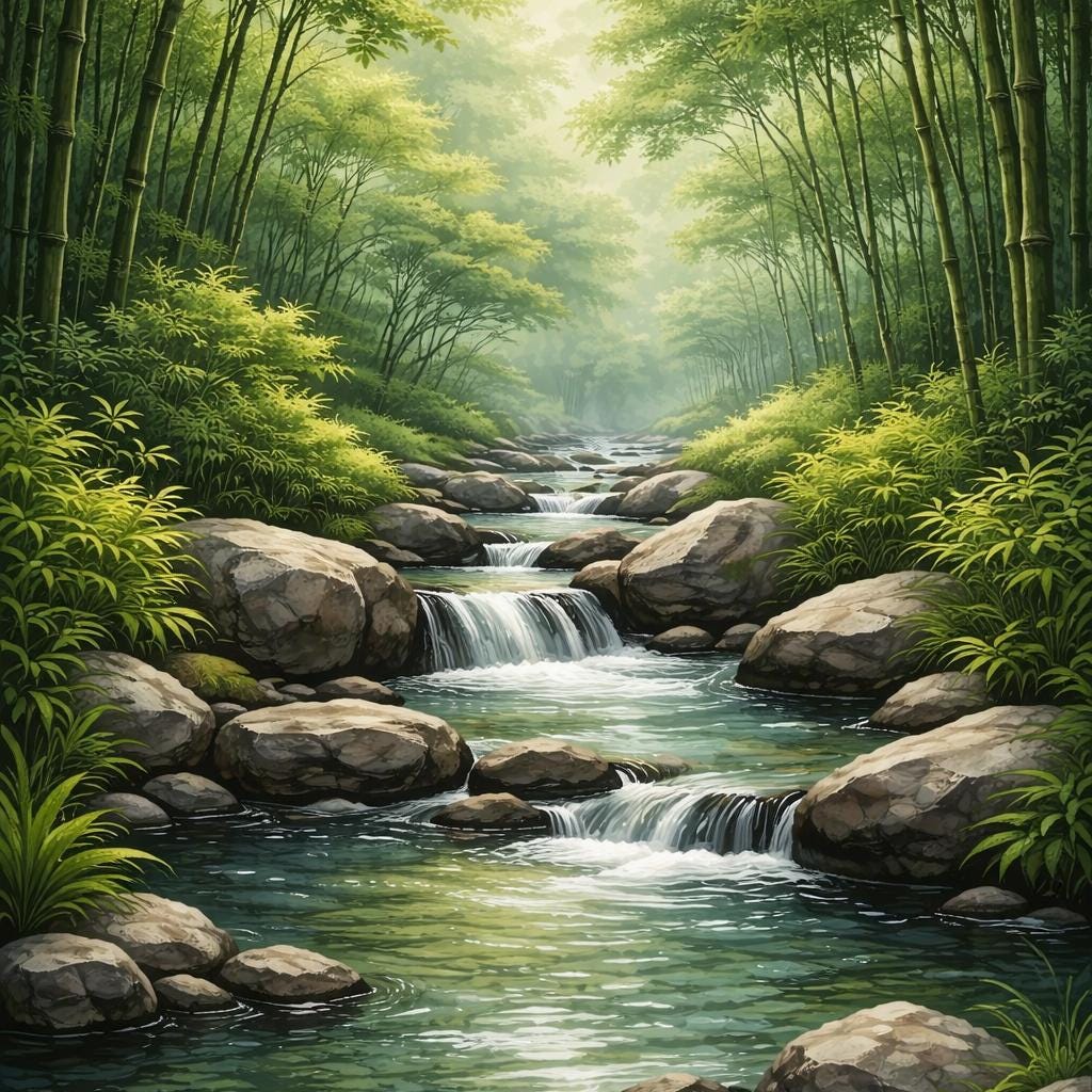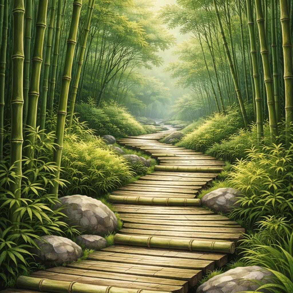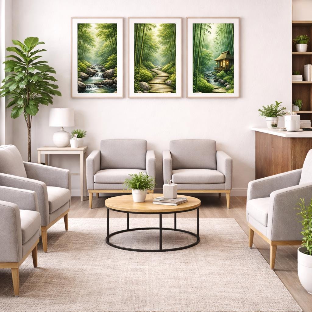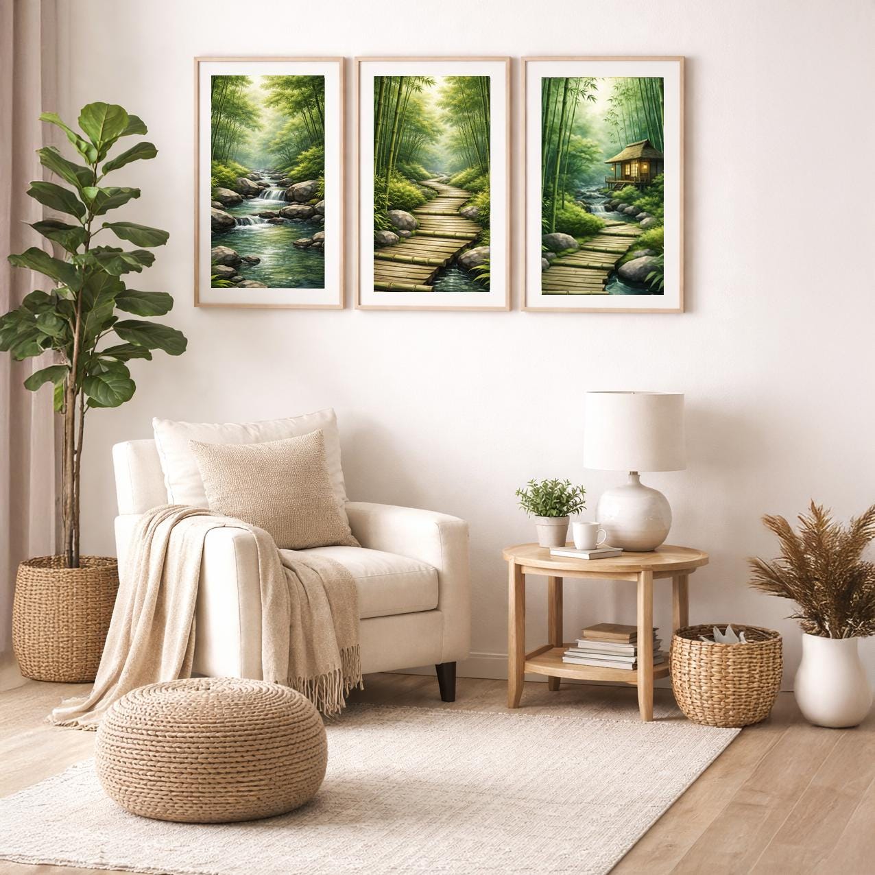 Each canvas features a tranquil bamboo forest scene. Together, the three canvases create a balanced visual rhythm that brings a sense of calm, clarity, and quiet focus to a space.
