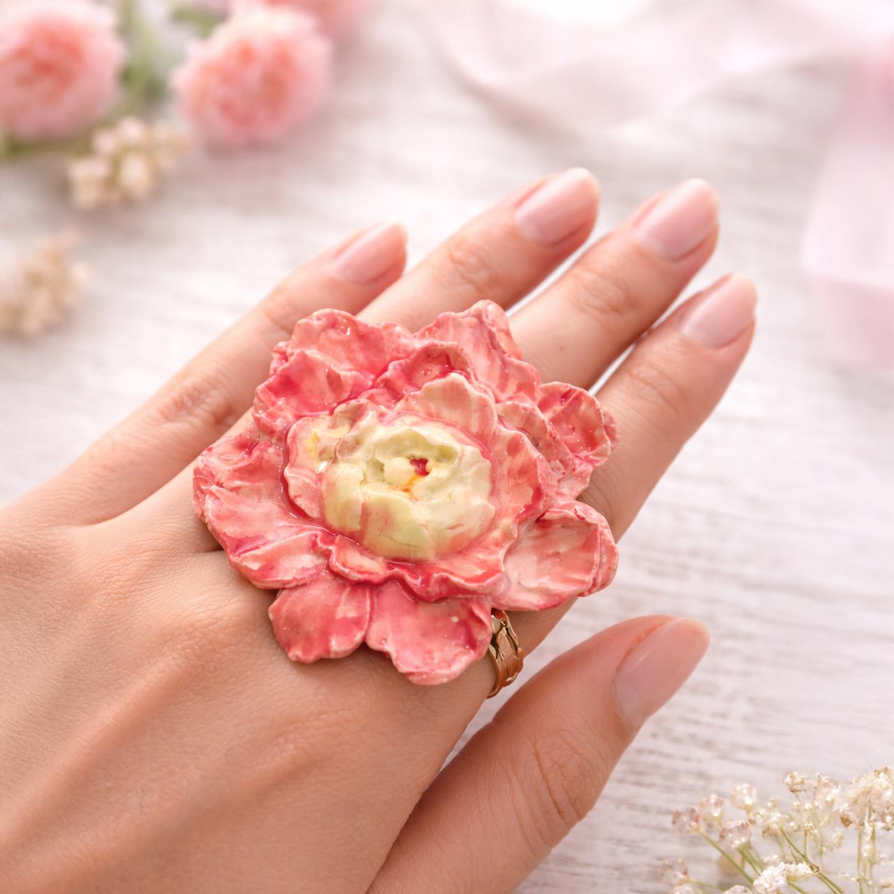 Designed as wearable art, this oversized flower makes a striking statement whether worn as a ring, brooch, or pendant.