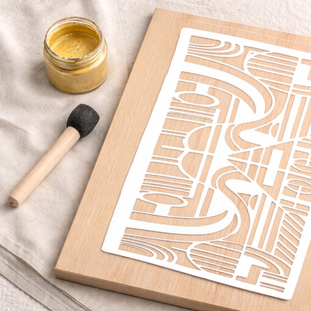 Bring timeless Art Deco elegance to your DIY projects with this curated set of reusable geometric stencils. Inspired by classic Deco architecture and design, each stencil features crisp lines and balanced symmetry—perfect for creating bold, sophisticated patterns on a variety of surfaces.