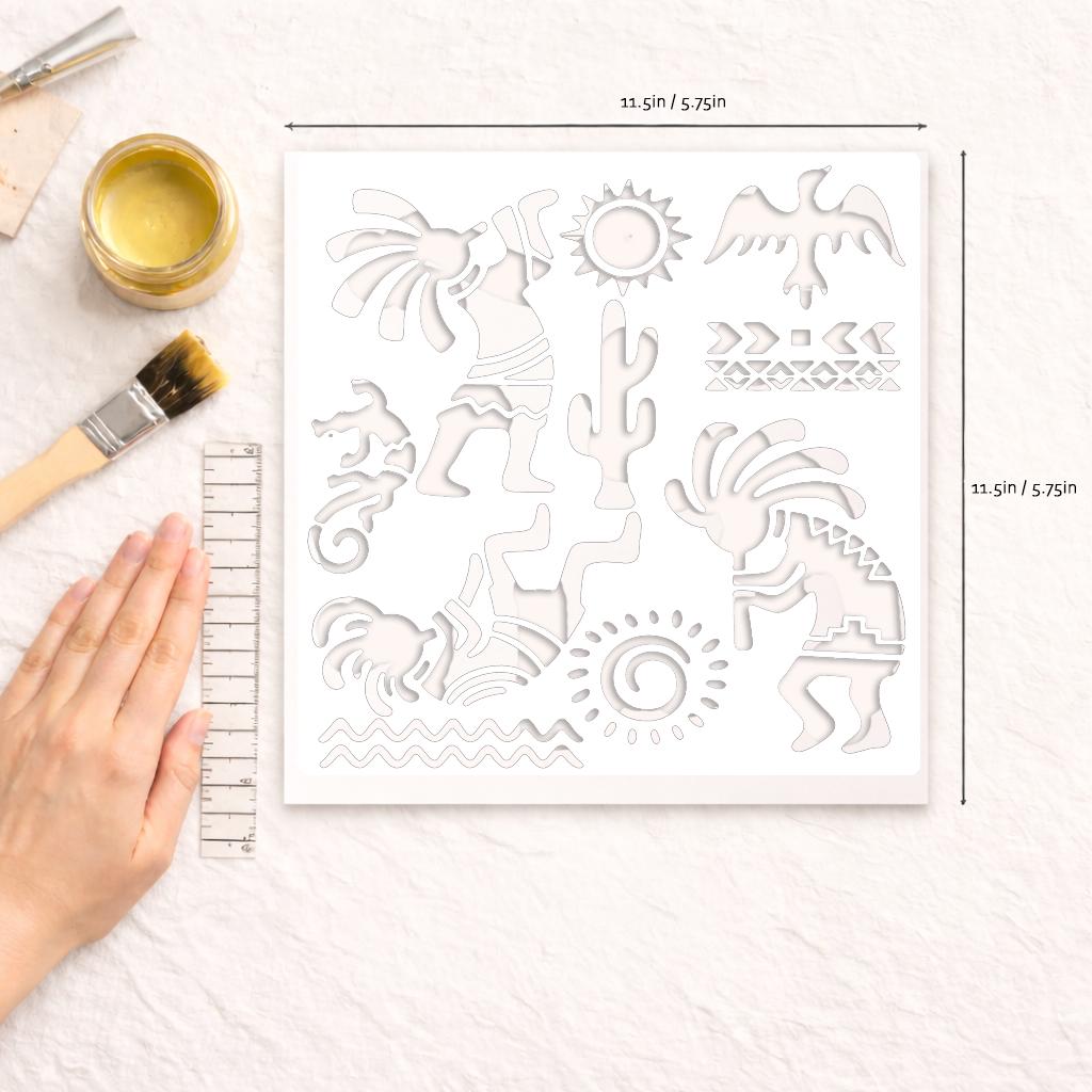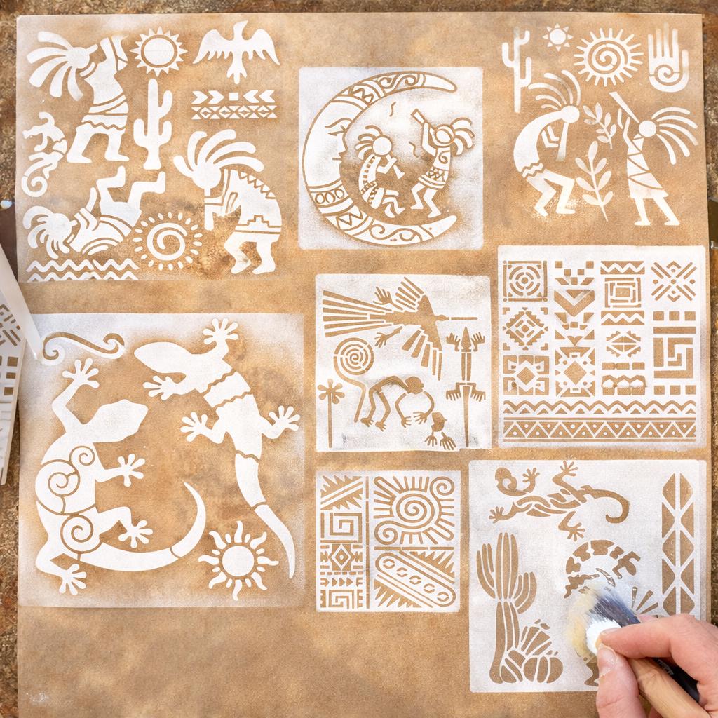 Bring the spirit of the Southwest into your projects with this complete Kokopelli stencil collection.