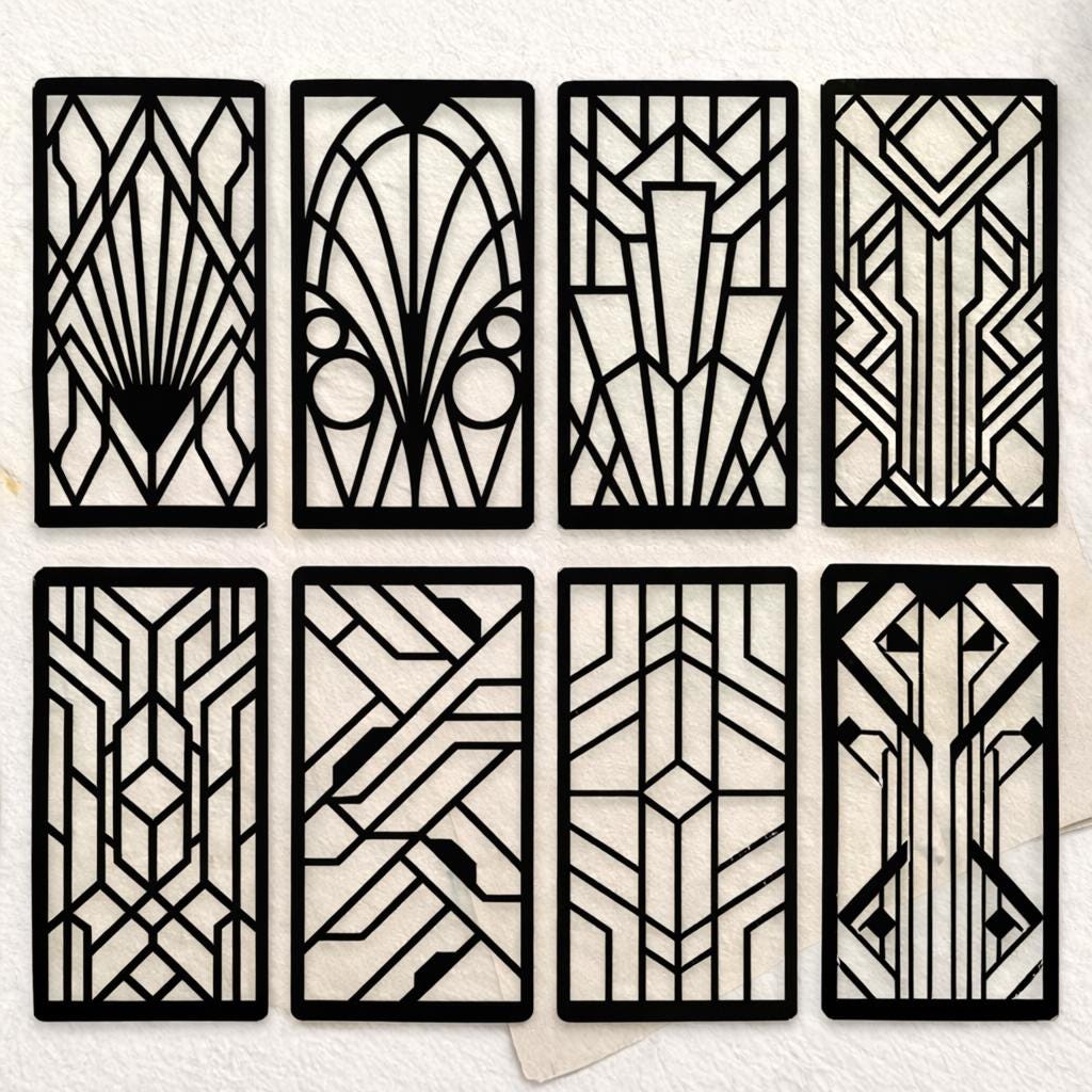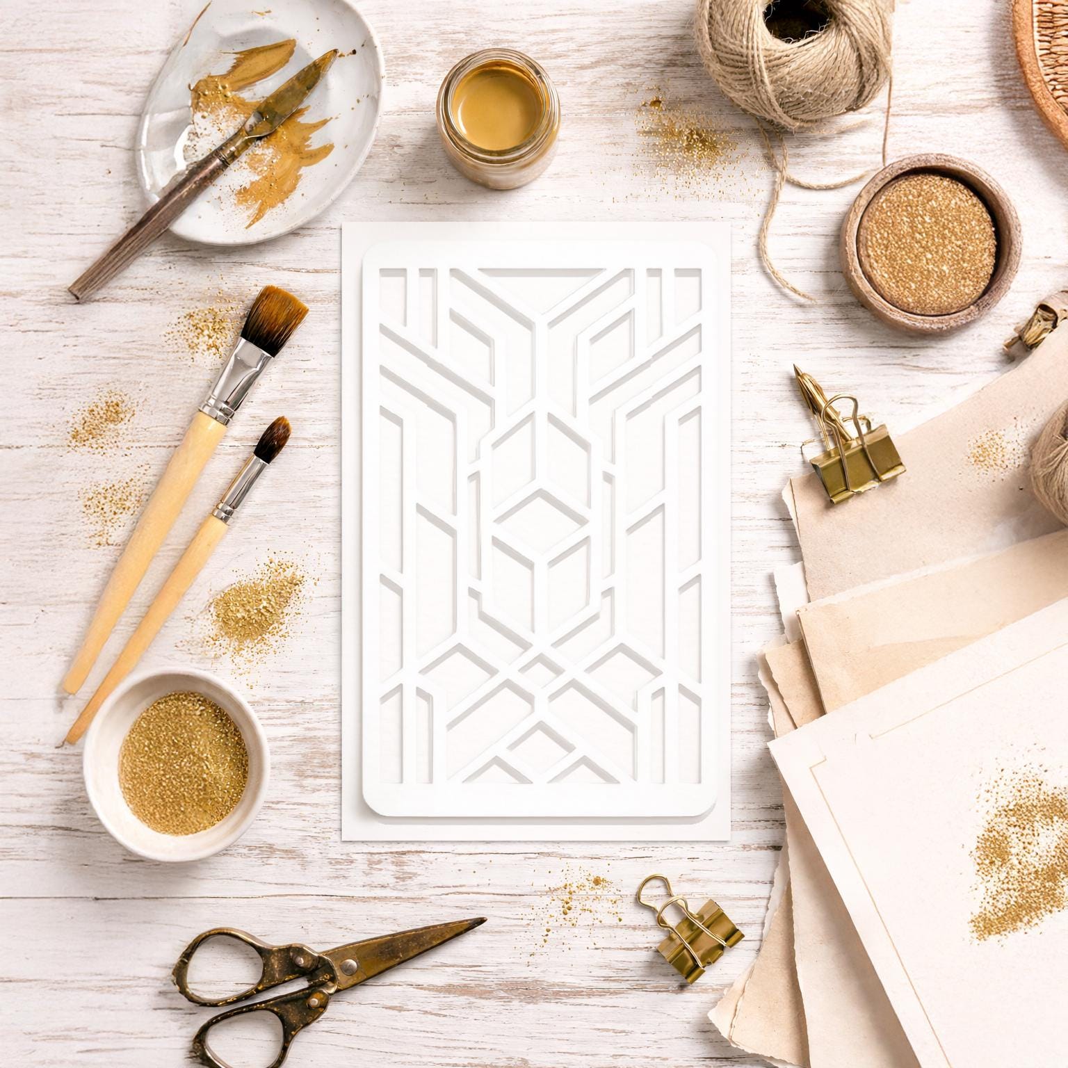 Bring timeless Art Deco elegance to your DIY projects with this curated set of reusable geometric stencils. Inspired by classic Deco architecture and design, each stencil features crisp lines and balanced symmetry—perfect for creating bold, sophisticated patterns on a variety of surfaces.
