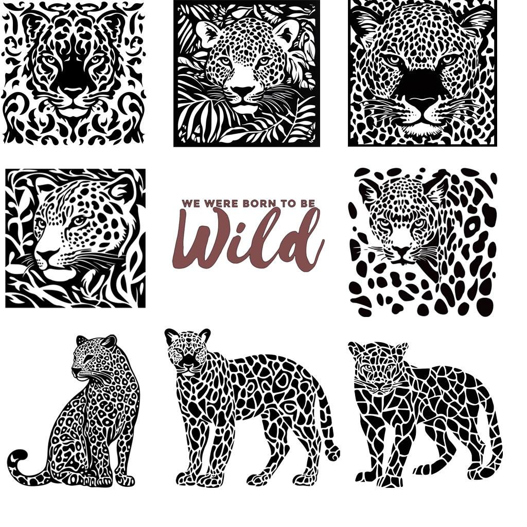 This Jaguar & Leopard stencil collection is designed for bold surfaces and statement projects.
