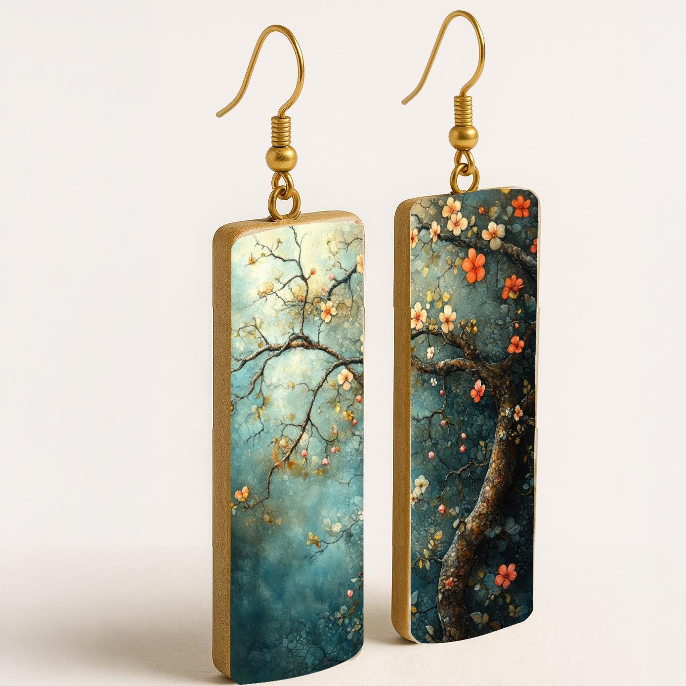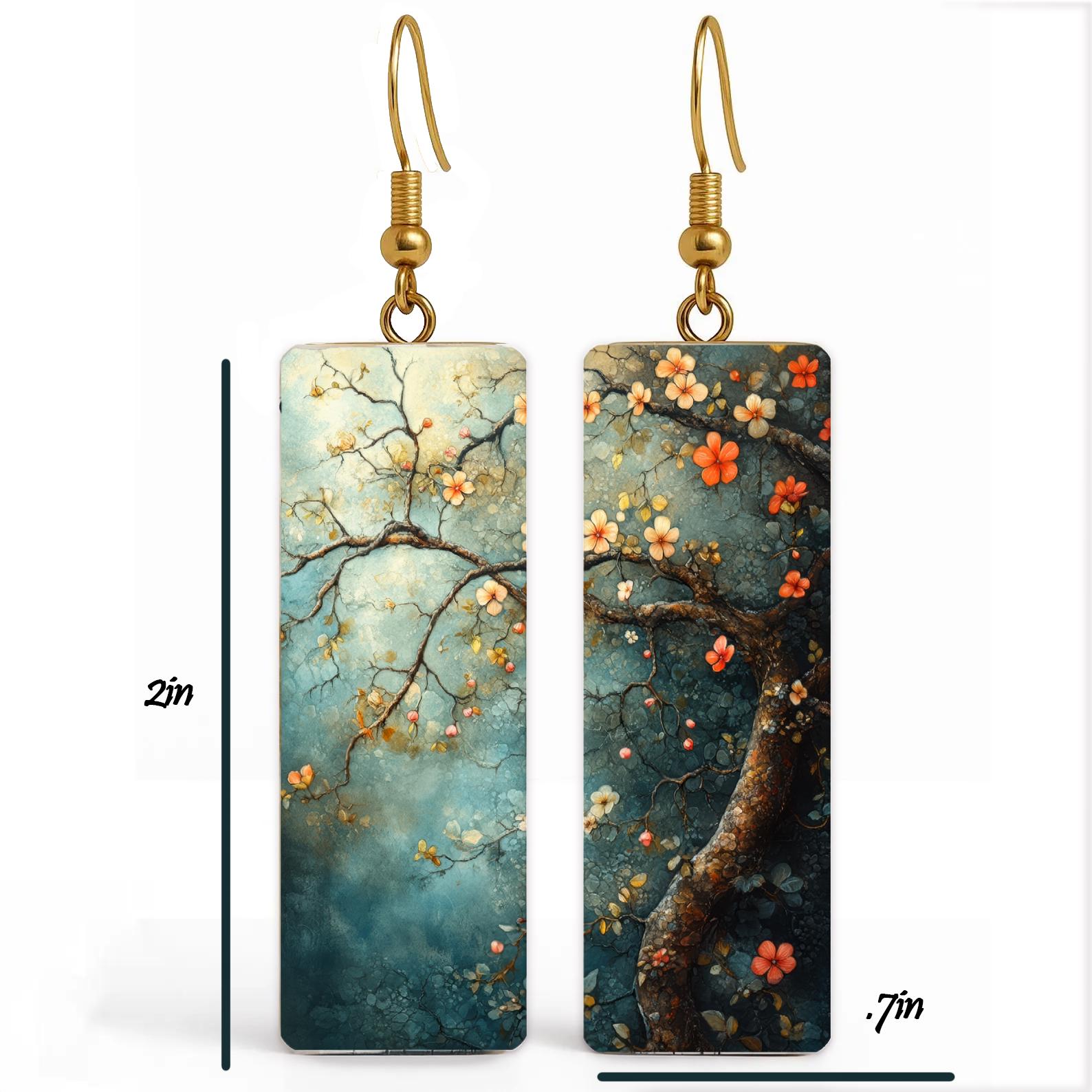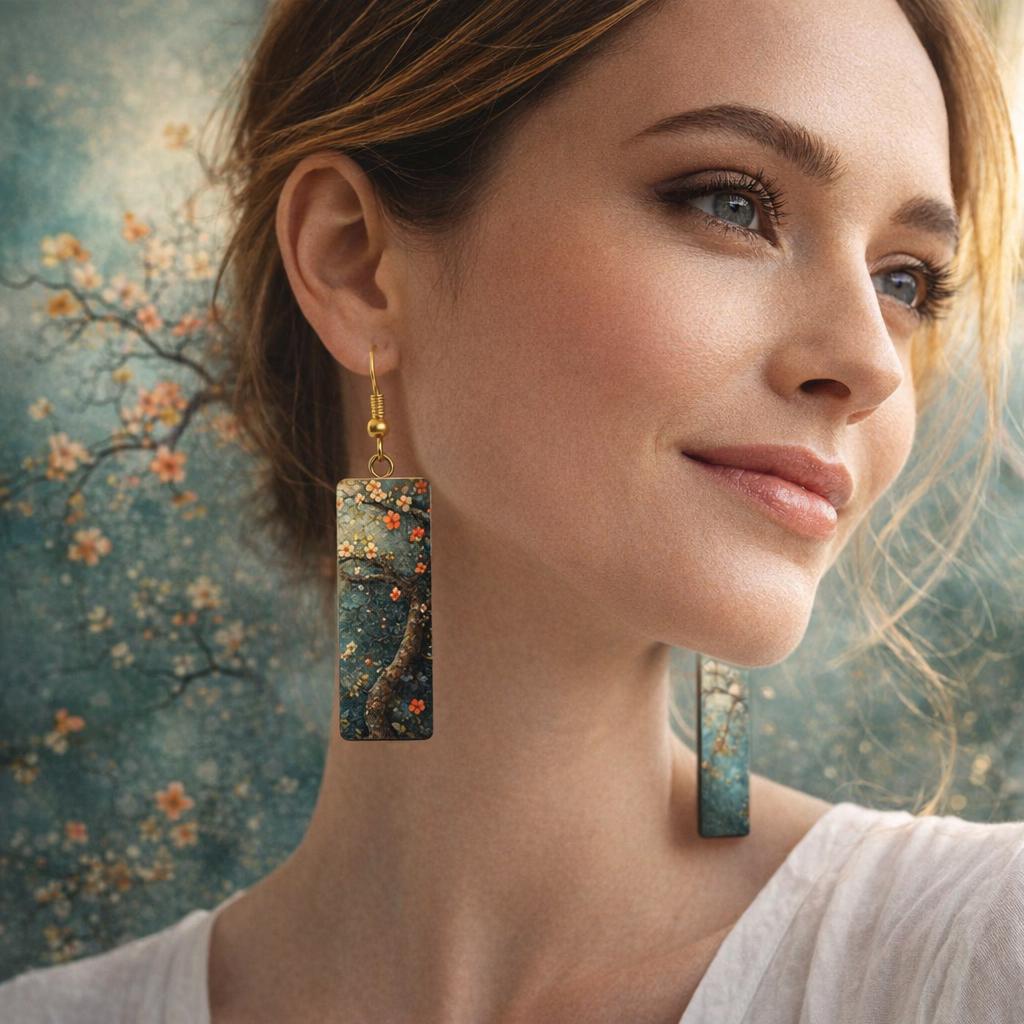 Bring a touch of quiet beauty to your everyday look with these artful botanical earrings. Featuring an elegant tree branch design with delicate blossoms, each piece feels like a miniature painting—softly textured, richly layered, and full of depth.