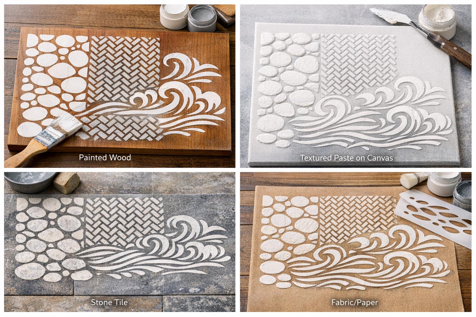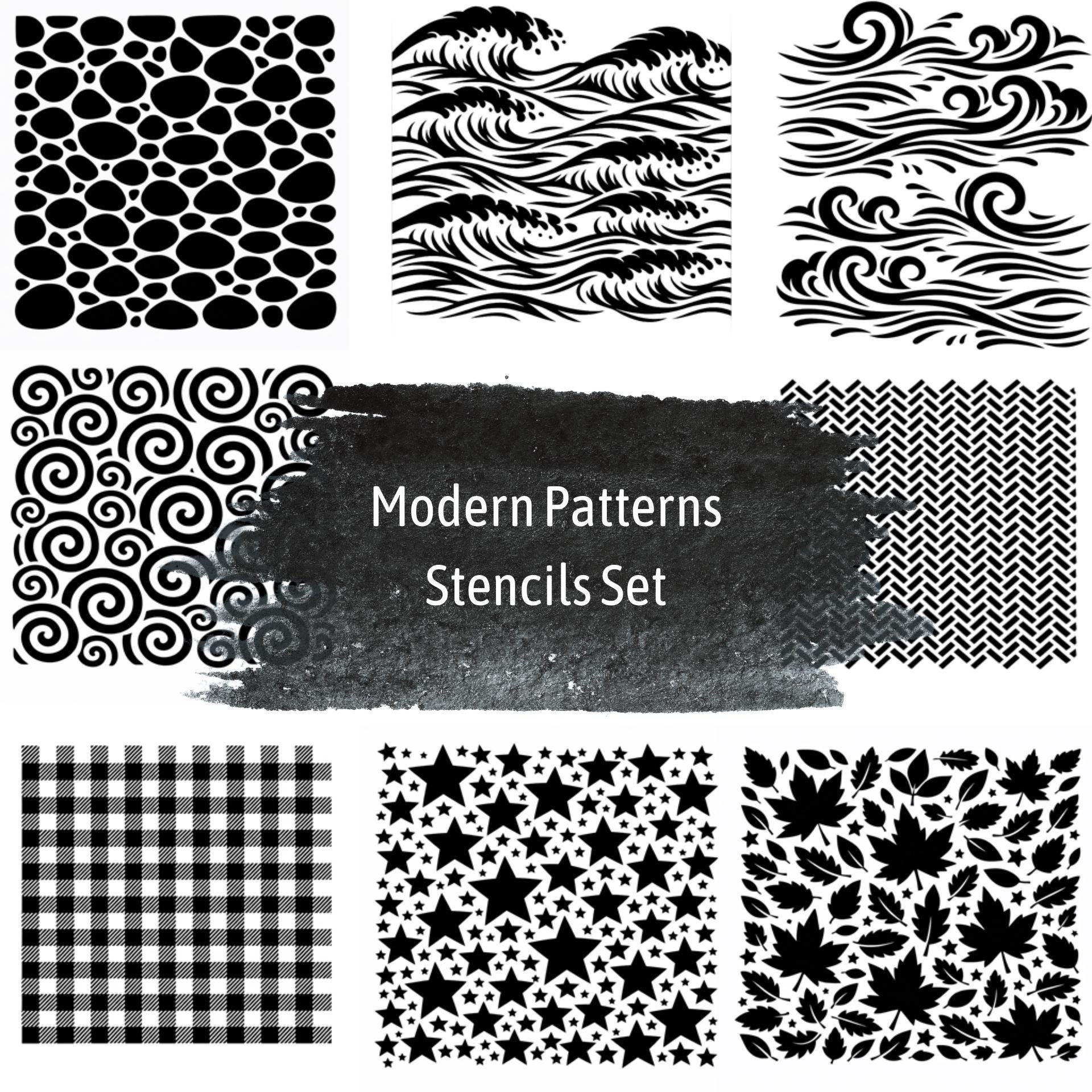 From organic pebble textures to flowing waves and bold graphic prints, these stencils are perfect for layering, repeating, and creating truly unique designs.