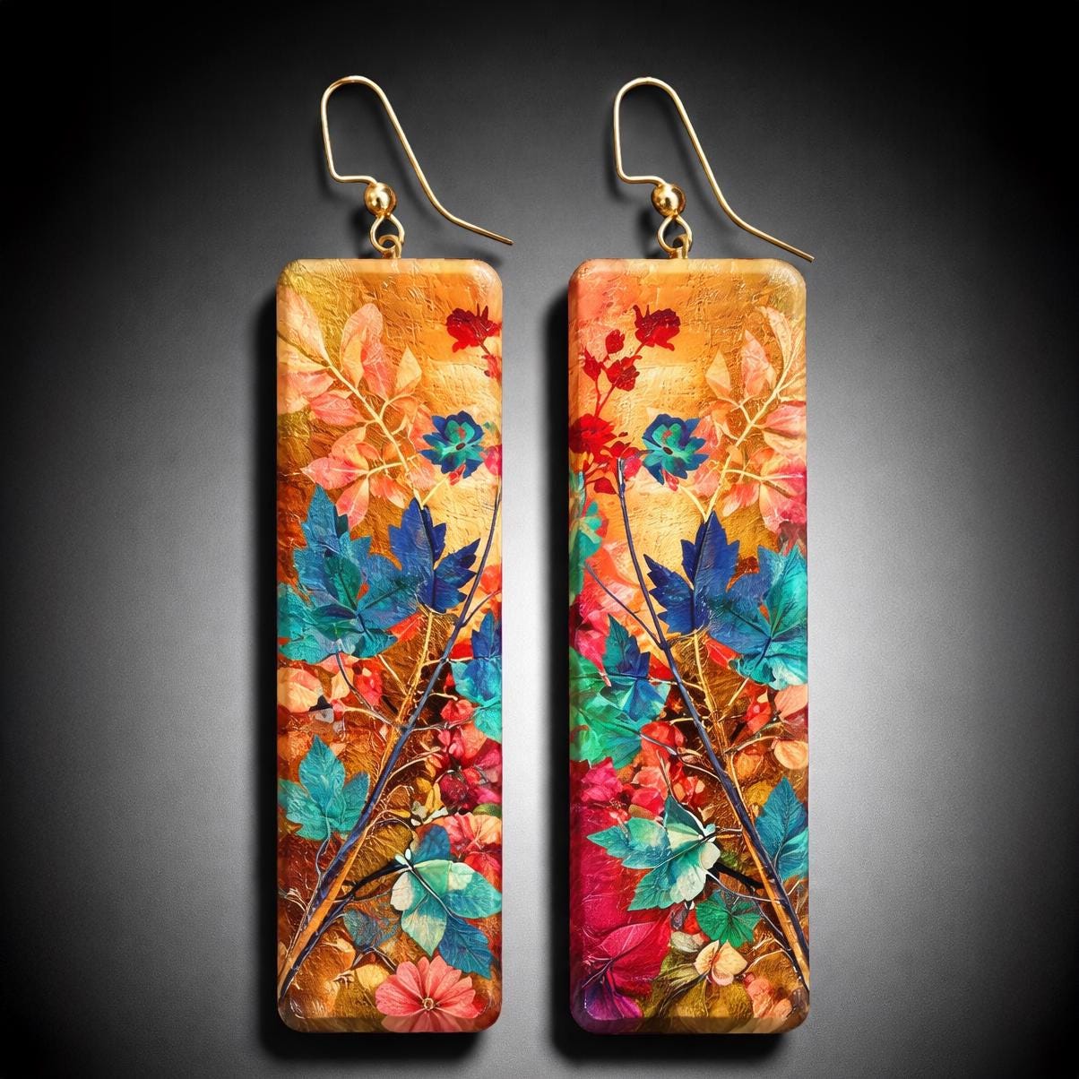The earrings are handcrafted from polymer clay and are the result of my search for the best image transfer technique.